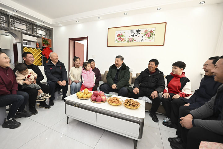 1月22日至24日,中共中央總書記、國家主席、中央軍委主席習近平冒著嚴寒來到遼寧,看望慰問基層干部群眾。這是22日下午,習近平在葫蘆島市綏中縣明水滿族鄉祝家溝村考察時,走進村民朱西存家看望。新華社記者 李學仁 攝