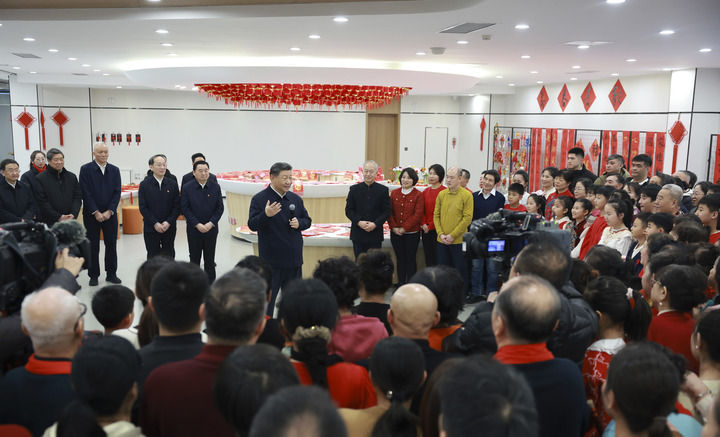 社區黨群服務中心里,一些社區居民在寫春聯,孩子們編著中國結。習近平來到他們中間,不時贊賞他們的作品,勉勵他們更好傳承弘揚中華優秀傳統文化。習近平還饒有興致地欣賞了社區退休人員表演的笛子合奏曲。他深情地對大家說,過好春節意味著新一年有一個好的開端,家家戶戶幸福生活、老老少少開心快樂,就是人間美景。我們要一起努力,讓這美景越來越靚麗。