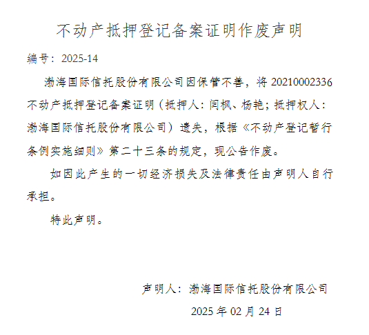 不動產抵押登記備案證明作廢聲明 編號:2025-14