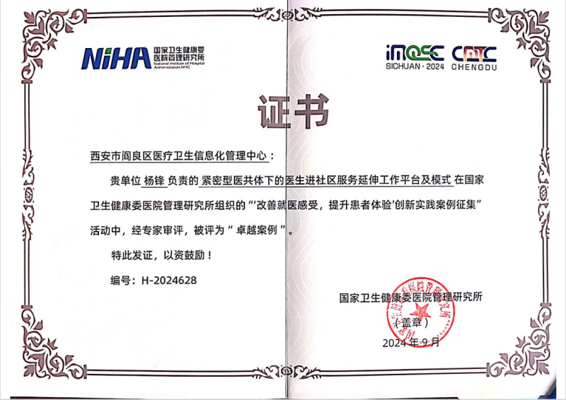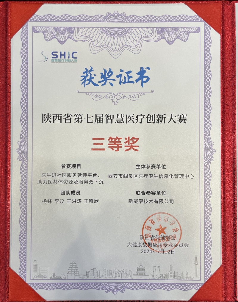 1.閻良區智慧醫療服務項目榮獲“陜西省第七屆智慧醫療創新大賽”三等獎。