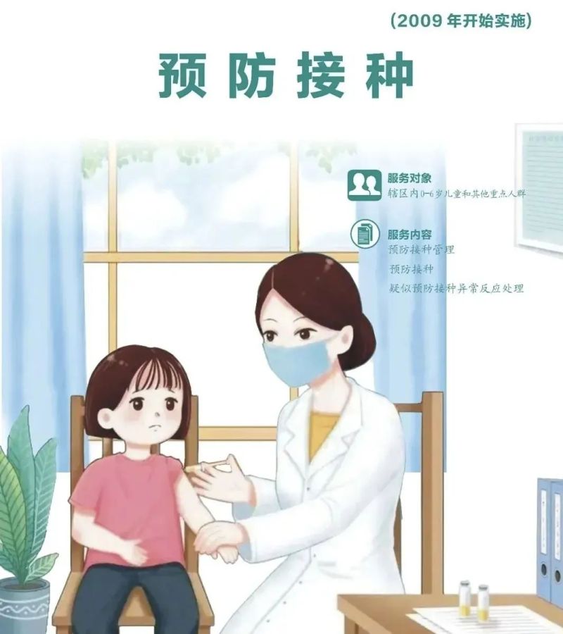 (2)預防接種服務。根據國家免疫規劃疫苗免疫程序,對適齡兒童進行常規接種。以及對重點人群進行應急接種或強化免疫接種。