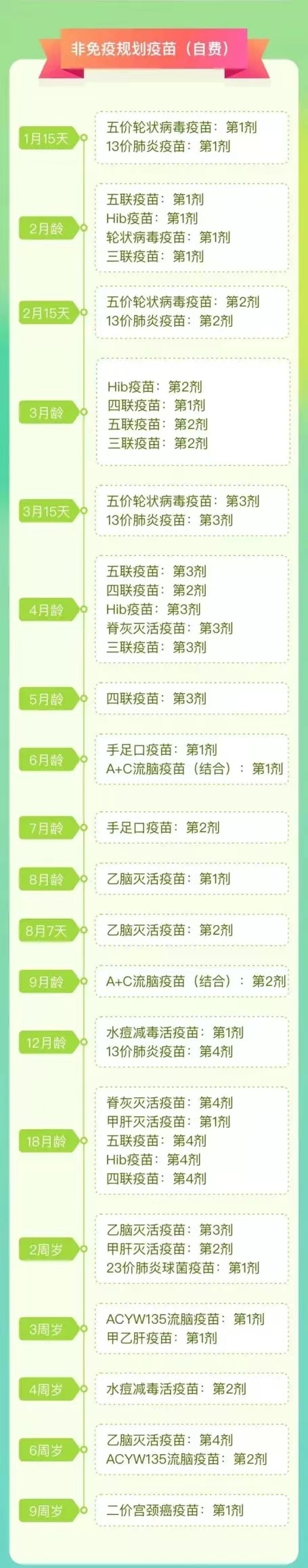 非國家免疫規劃疫苗0-6歲兒童免疫程序表