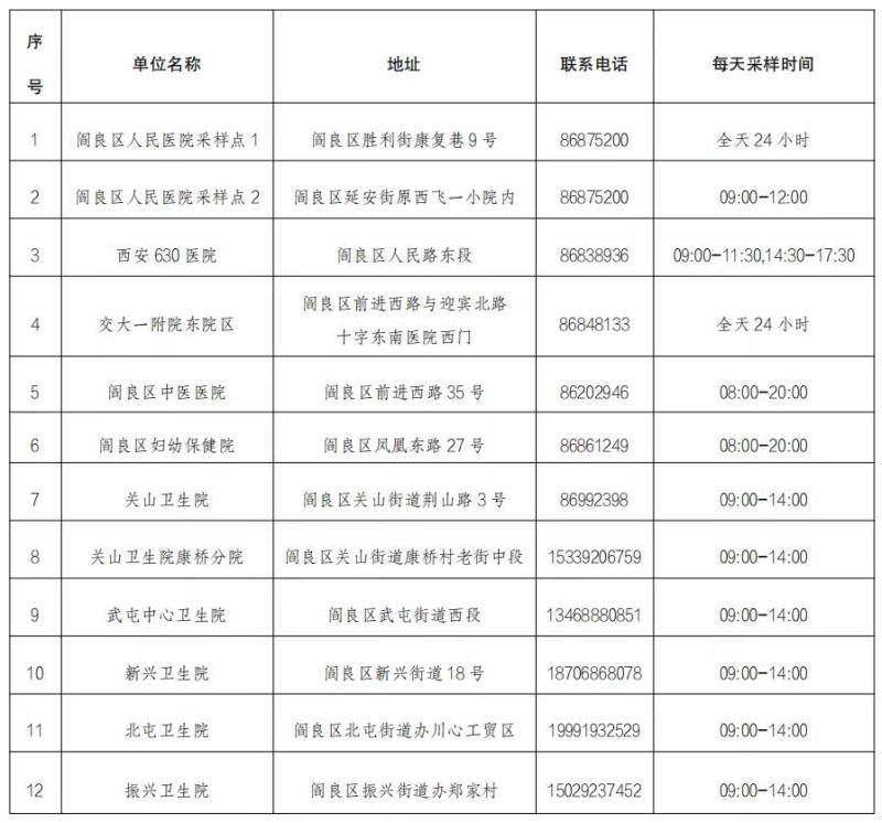 結(jié)合當(dāng)前疫情防控總體形勢(shì),為進(jìn)一步做好復(fù)工復(fù)產(chǎn)和社會(huì)保供等方面保障工作,滿足閻良區(qū)參與疫情防控、患病就醫(yī)以及急需工作人員核酸檢測(cè)需求,本著方便、就近的原則,結(jié)合實(shí)際,在全區(qū)各衛(wèi)生院和城區(qū)設(shè)置采樣點(diǎn)位12處,進(jìn)行核酸檢測(cè)采樣工作。