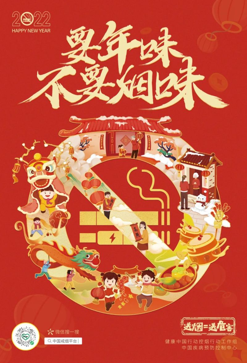 健康是我們共同的追求,控煙是世界的潮流,是現代文明的體現。在舉國禱祝新年更美好、更健康、更幸福的同時,讓我們做自己健康的第一責任人,積極行動起來,過年送禮不送煙、見面不吸煙、不敬煙、不勸煙,共同改變不文明習俗,共度健康文明春節。