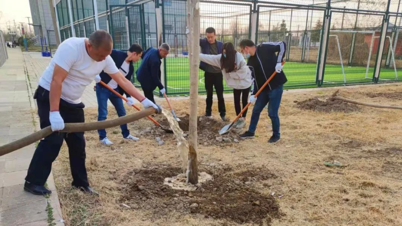 春滿大地萬物蘇,植樹添綠正當時。3月11日下午,西安閻良區關山街道組織機關干部在新區淘寶城廣場開展義務植樹活動。活動現場,大家分工有序,揮鍬鏟土、挖坑培土、提水澆灌,認真細致地栽種好每一株樹苗,真正做到了勁往一處使,汗往一處流,為春天增添一片新綠。