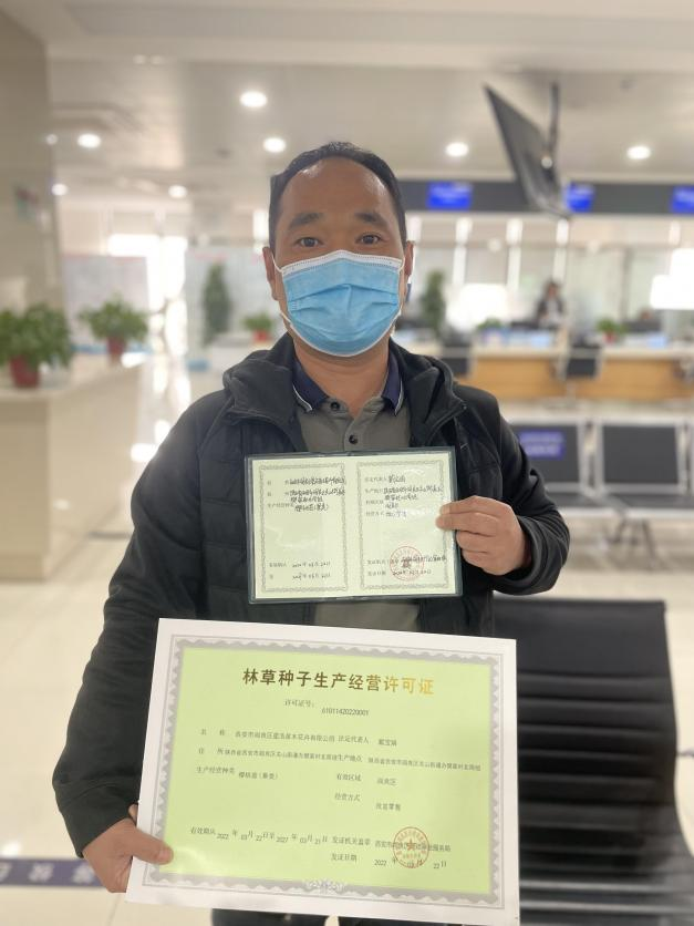 3月22日,西安市閻良區星浩苗木花卉有限公司經辦人王先生在閻良區政務大廳領取了首張新版《林草種子生產經營許可證》。這是全市發出的首張告知承諾制《林草種子生產經營許可證》。