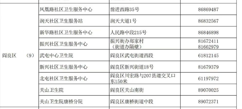 武屯中心衛生院 | 武屯街道中段武屯中心衛生院 | 09:00-11:30 14:30-17:30 |