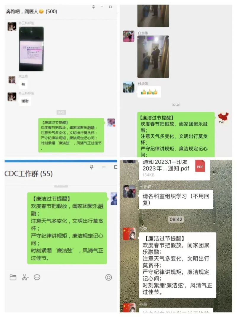 “歡度春節把假放,闔家團聚樂融融;注意天氣多變化,文明出行莫貪杯;嚴守紀律講規矩,廉潔規定記心間;時刻緊繃‘廉潔弦’,風清氣正過佳節。”系統黨員干部通過微信、短信收到溫馨提示、節日祝福,正面引導和反面警示教育有機結合起來,嚴明過節紀律,持續釋放正風肅紀強烈信號,進一步筑牢拒腐防變的思想防線,確保系統上下度過一個廉潔、歡樂的節日。