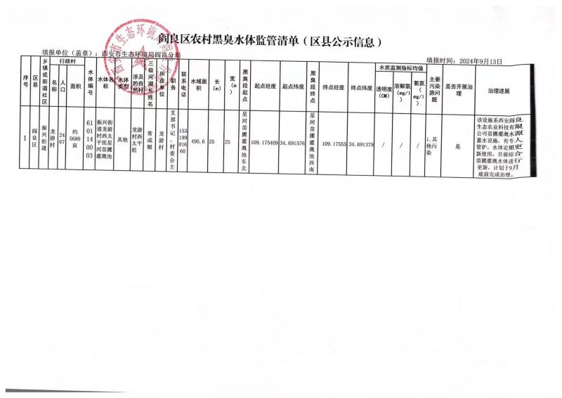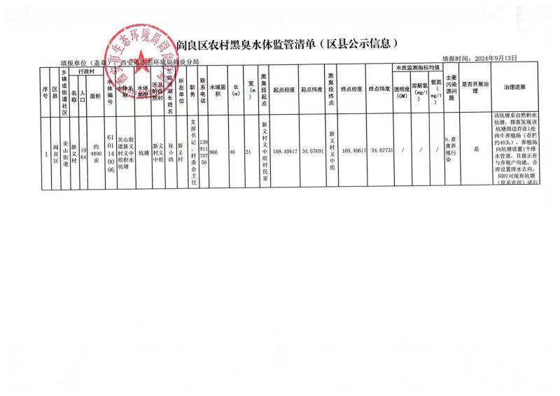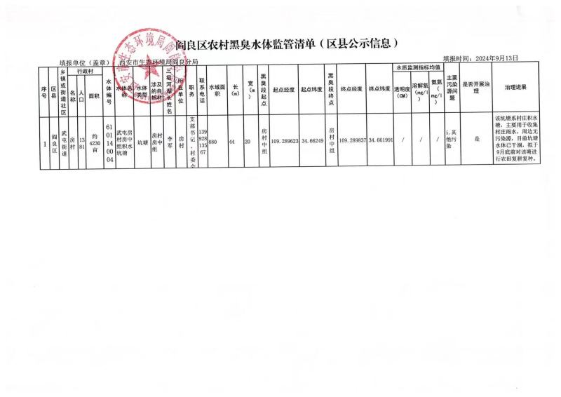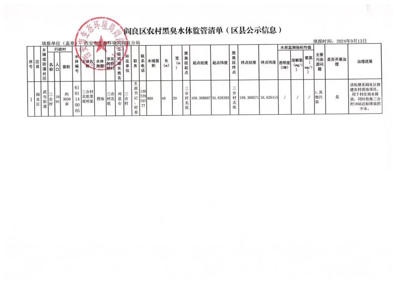 閻良區(qū)農(nóng)村黑臭水體監(jiān)管清單(區(qū)縣公示信息)
