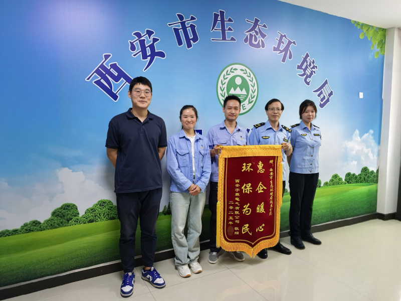 近日,西安宇森電氣有限公司負責人為西安市生態環境局閻良分局送來“惠企暖心 環保為民”錦旗,對閻良分局工作人員的幫扶指導表示感謝。