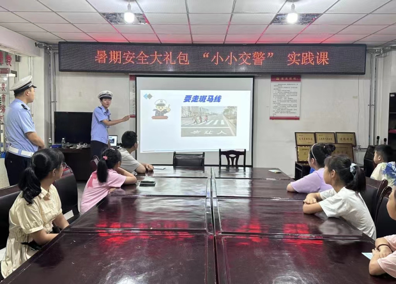 | 內容概述 | 為了讓轄區少年兒童掌握交通文明知識,發揮“小手拉大手”的示范引領作用,營造文明和諧暢通的城市交通環境,8月8日上午,新華路街道勝利街社區團支部聯合區交警安監中隊交警開展“小小交警”實踐課。”“交警叔叔”通過常見的違反交通規則的現象,讓小少年們自己發現問題,然后對交通信號燈、斑馬線、交通標志等知識進行一一解讀,使少年們熟練掌握交通文明知識,有效促進交通安全文明知識的傳播和推廣,為孩子們的暑期安全生活送上了一份“大禮包”。 | ||||
