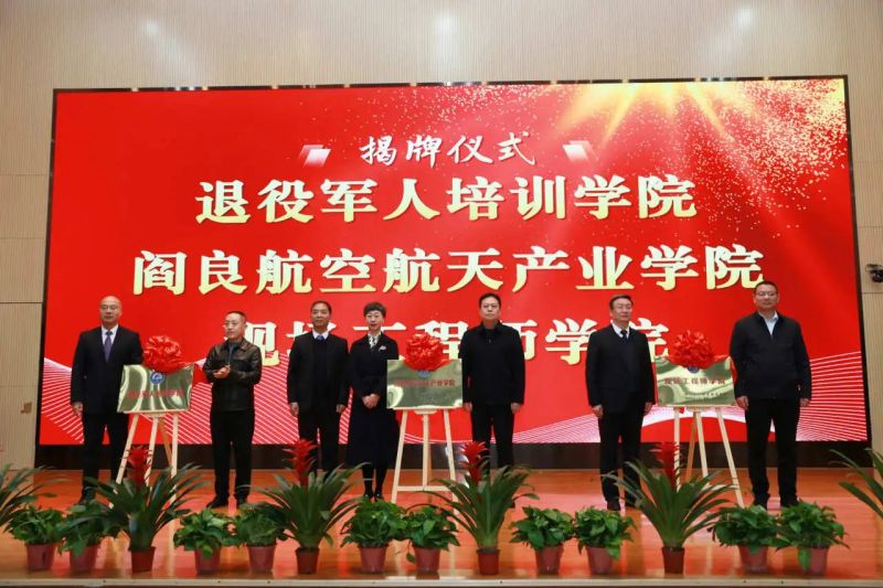 西航職院與西安市閻良區退役軍人事務局揭牌“退役軍人培訓學院”;與西安市閻良區人力資源和社會保障局、西安閻良國家航空高技術產業基地人才服務中心、西安閻良航空基地相關企業揭牌“閻良航空航天產業學院”;與西安昆侖工業(集團)有限責任公司揭牌“現場工程師學院”