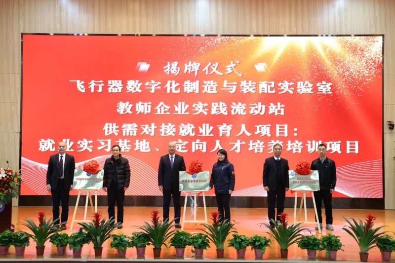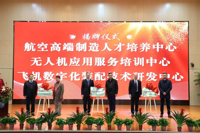 共同揭牌“飛行器數字化制造與裝配實驗室”“航空高端制造人才培養中心”“教師企業實踐流動站“無人機應用服務培訓中心”飛機數字化裝配技術研發中心”“教育部供需對接育人項目就業實習基地、定向人才培養培訓項目”