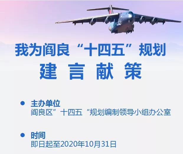 閻良區“十四五”規劃與在中國航空城生活的每一位居民息息相關,誠邀您為閻良區“十四五”規劃建言獻策,我們將認真研究,充分吸納您的寶貴意見,更好更科學地謀劃閻良的未來發展。優秀建言獻策者將有機會獲邀參加“十四五”規劃專題座談會。