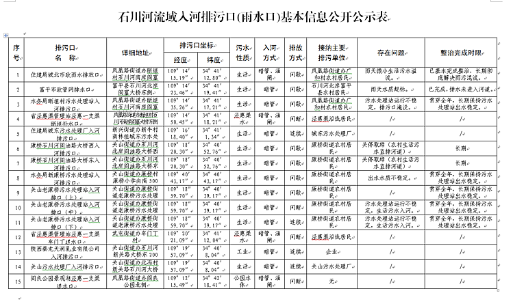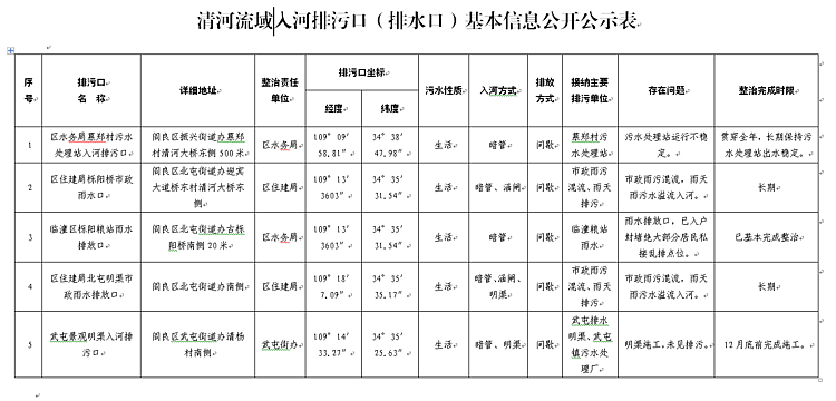 閻良區(qū)入河排污口(排水口)基本信息公開公示