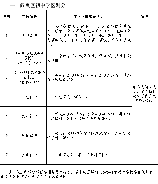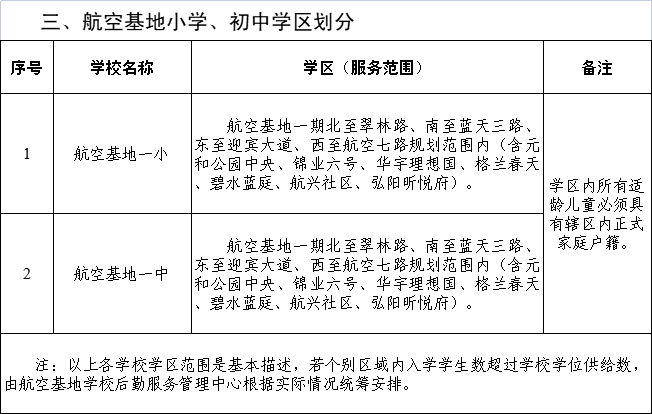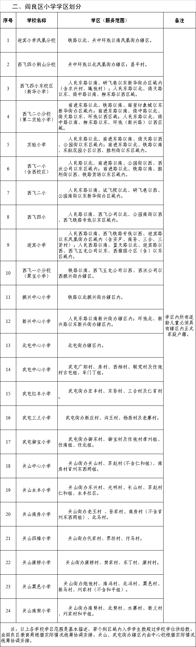 閻良區(航空基地)2022年義務教育學區劃分一覽表