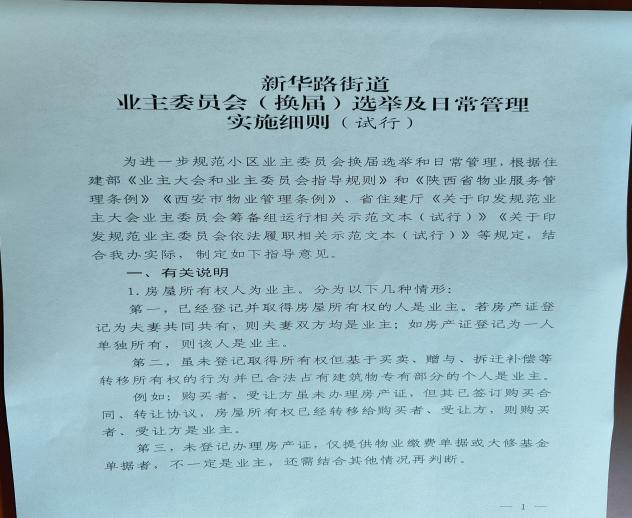 近年,《陜西省物業(yè)管理?xiàng)l例》《西安市物業(yè)管理?xiàng)l例》分別進(jìn)行了修訂,突出了黨建引領(lǐng)和程序規(guī)范,有力指導(dǎo)了街道、社區(qū)如何參與、怎樣開(kāi)展業(yè)委會(huì)選舉工作。新華路街道結(jié)合這些,針對(duì)每個(gè)小區(qū)的不同特點(diǎn),通過(guò)每月居民懇談日、“周三”下社區(qū)等活動(dòng)充分了解群眾意愿,量身打造符合小區(qū)實(shí)際的“個(gè)性化清單”,在選舉每個(gè)環(huán)節(jié)公開(kāi)、透明,及時(shí)吸收業(yè)主意見(jiàn)建議,不斷改進(jìn)方式方法,圓滿完成20個(gè)小區(qū)業(yè)主委員會(huì)(換屆)選舉,廣受好評(píng)。2025年以來(lái),新華路街道形式走新,從建立“專(zhuān)家?guī)臁薄⑼菩猩鐓^(qū)干部“交叉任職”、組織推選等額選舉等入手,業(yè)委會(huì)(換屆)選舉實(shí)現(xiàn)更高效率、更快速度,與社區(qū)形成更大合力,讓居民群眾居住“幸福感”不斷攀升。