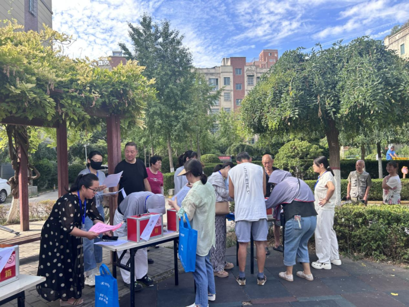 7月26日,清晨的陽(yáng)光剛漫過(guò)福源二期院子的凌霄花藤,小廣場(chǎng)就熱鬧得像開(kāi)了鍋。小區(qū)居民的熱情掩蓋了夏日的炎熱,新一輪的業(yè)委會(huì)換屆選舉投票工作也正式拉開(kāi)帷幕!