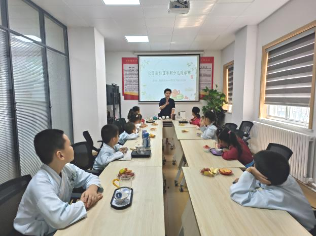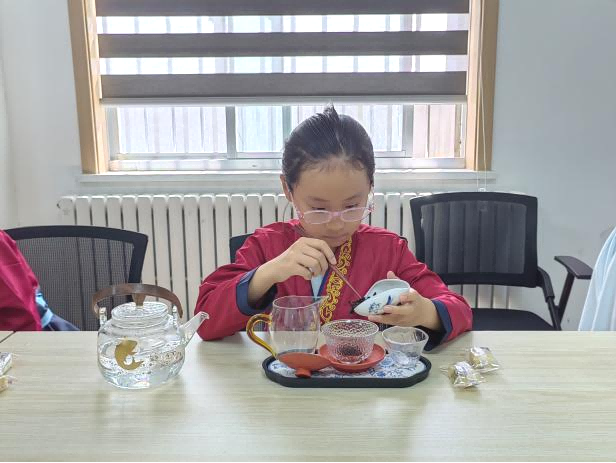 茶藝體驗課堂尤為精彩,小家伙們身著漢服,跟隨老師系統學習茶藝入門技巧,掌握溫杯、投茶、沖泡等基礎流程,同時理解敬茶、謝茶等禮儀規范,在一招一式中涵養謙遜有禮的品格。