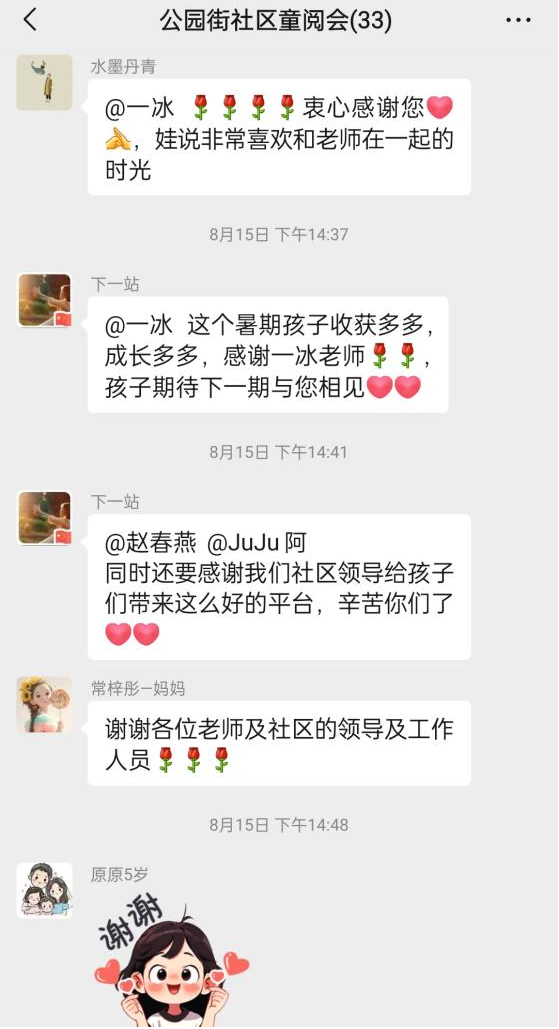 課堂時光短暫,卻如點點星光般在孩子們心中留下了溫暖指引和深刻的印記。家長們由衷感慨:“社區童閱會暑期課堂真是解決了我們的后顧之憂!孩子每天都盼著去,回家后總興奮地分享新學到的知識,讓我們能踏踏實實安心工作,我們真是省心又暖心!”