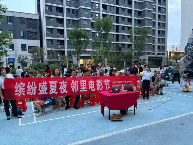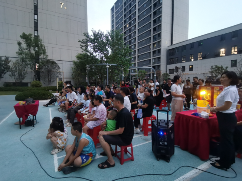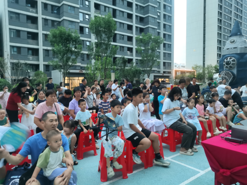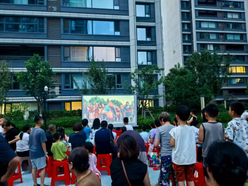 夜幕緩緩降臨,經典動畫電影《哪吒之魔童降世》準時開播。熒幕上,哪吒“我命由我不由天”的熱血故事點燃全場,孩子們緊盯畫面,為角色的成長吶喊助威,清脆的歡笑聲與激動的討論聲交織;家長們則圍坐一旁,在光影流轉間交流育兒感悟,分享社區生活點滴,陌生的鄰里在溫馨氛圍中漸漸熟絡,活動廣場化作充滿歸屬感的“社區大家庭”。