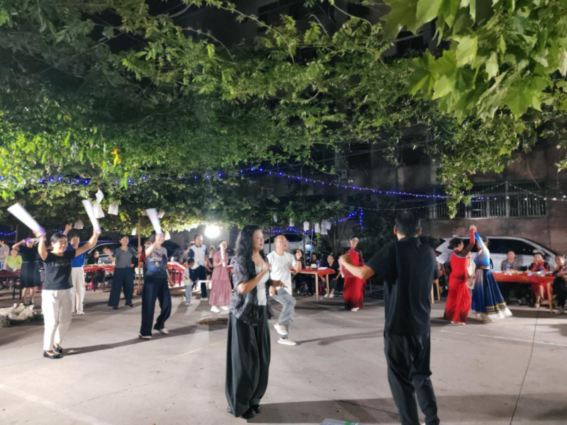 | 內容概述 | 9月9日晚,前進東路社區聯合農行家屬院小區業主委員會、前進東路社區姐妹花舞蹈隊開展豐收晚會,以葡萄采摘為引線,融合多元文藝表演。活動在大合唱《歌唱祖國》中拉開序幕,藏舞、獨唱、扇子舞、秦腔等節目精彩紛呈,還有居民即興表演。表演間隙有茶歇,活動讓鄰里情升溫。下一步,社區與業委會將持續搭建交流平臺。 | ||||