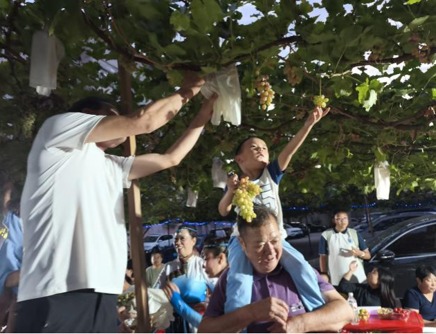 葡萄架下,豐收的喜悅隨處可見。居民們穿梭其間,在藤蔓間駐足挑選,親手摘下新鮮果實,體驗田園采摘的樂趣。農行家屬院小區業主委員會成員陳強國表示,小區是我們共同的家園,需要大家攜手共建,貢獻智慧與力量,未來共同將農行家屬院小區打造成為更具幸福感、歸屬感的美好家園。