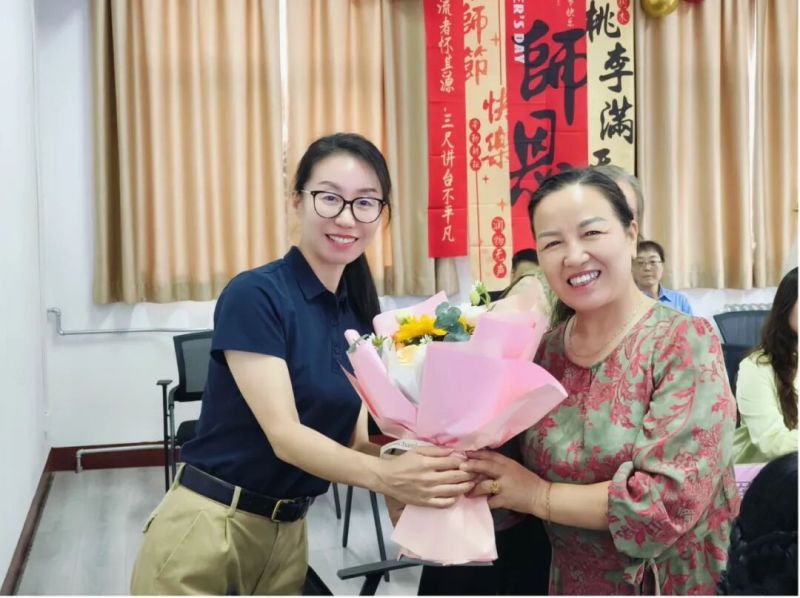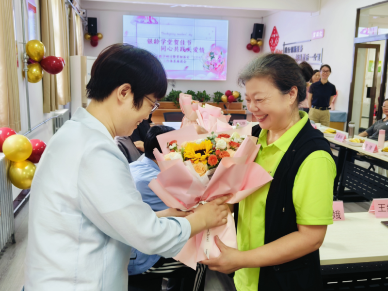 最動人的環節莫過于贈花儀式。潤天花苑社區黨委書記趙榮榮、老年大學負責人李云靜依次為現場老師們送上鮮花,并在鏡頭前留下珍貴合影。一束束鮮花承載著敬意,一張張笑臉定格成難忘瞬間。
