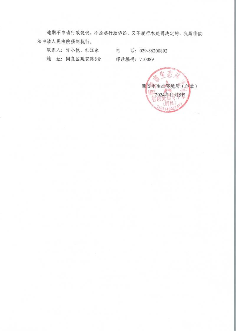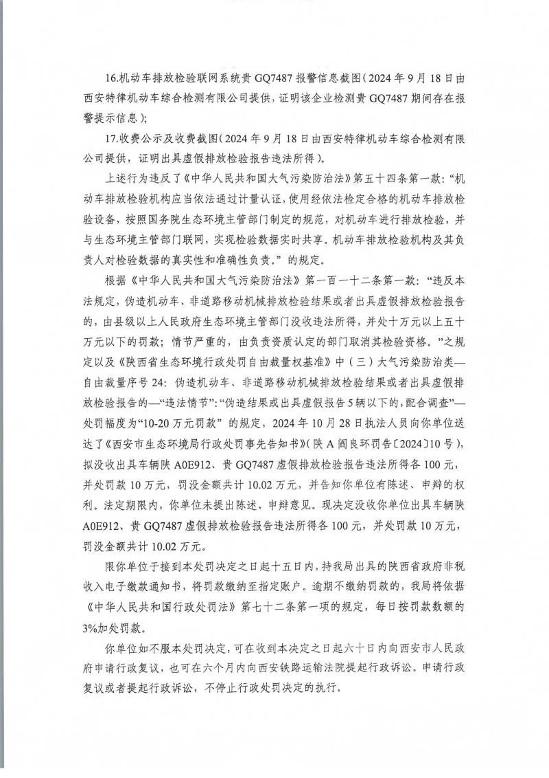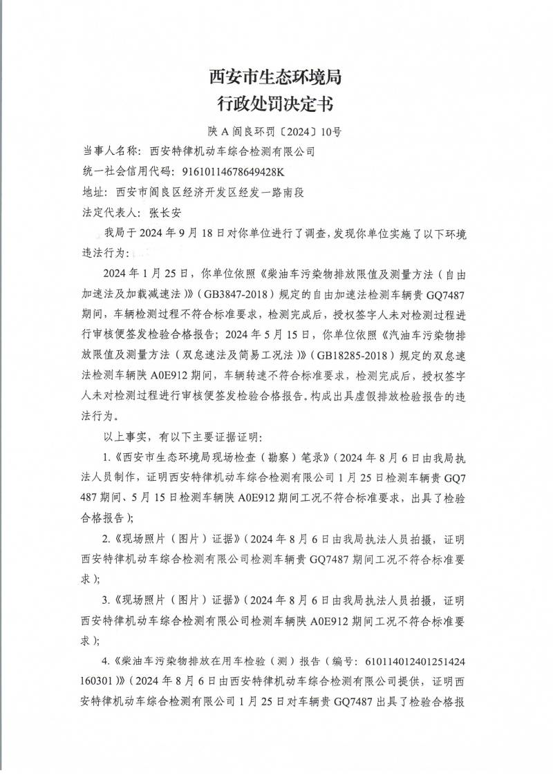 2024年西安市生態(tài)環(huán)境局閻良分局對西安特律機動車綜合檢測有限公司環(huán)境違法行為行政處罰信息公開