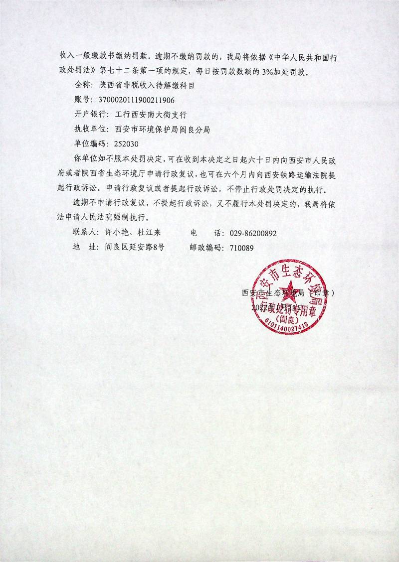 2022年西安市生態環境局閻良分局針對陜西西源環??萍加邢挢熑喂经h境違法行為行政處罰信息公開