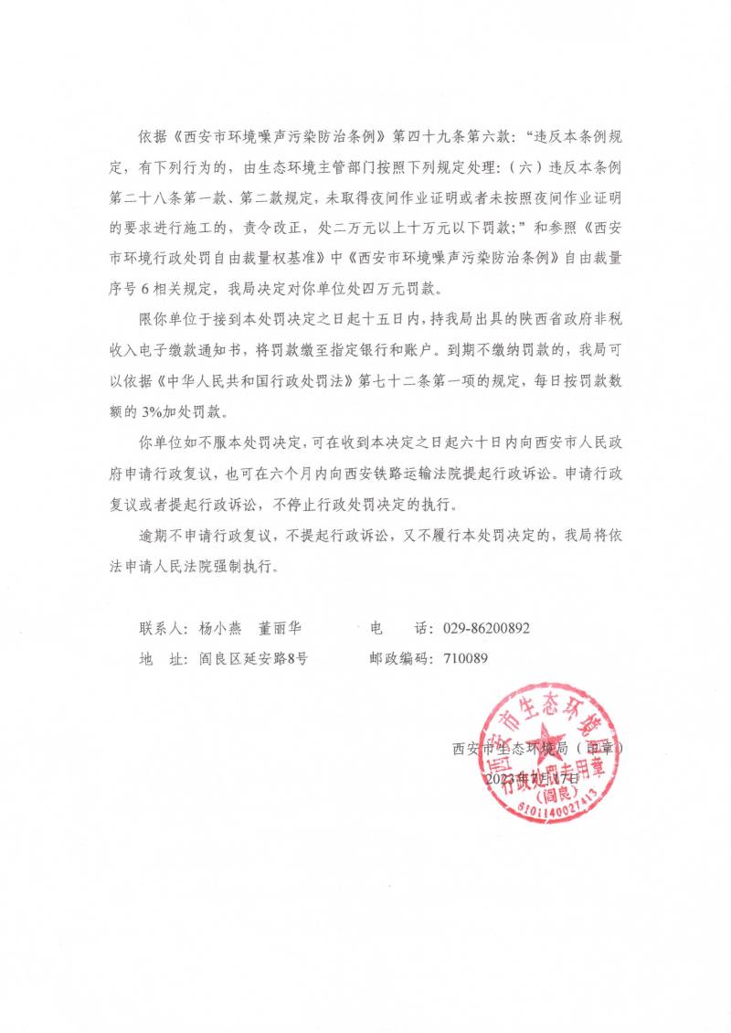 2023年西安市生態環境局閻良分局針對陜西潤誠亞建設工程有限公司環境違法行為行政處罰信息公開