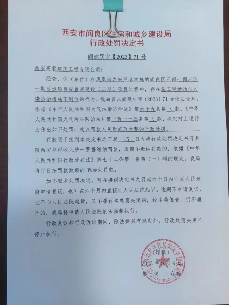 閻建罰【2023】71號(hào)