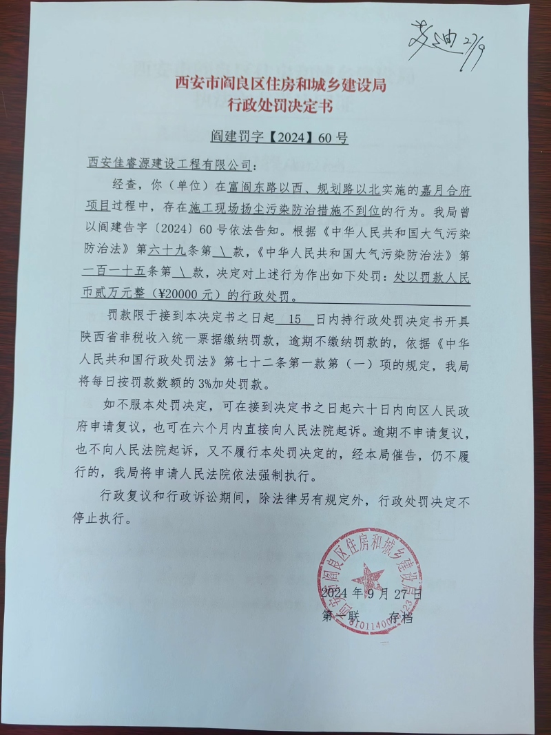 閻建罰〔2024〕60號