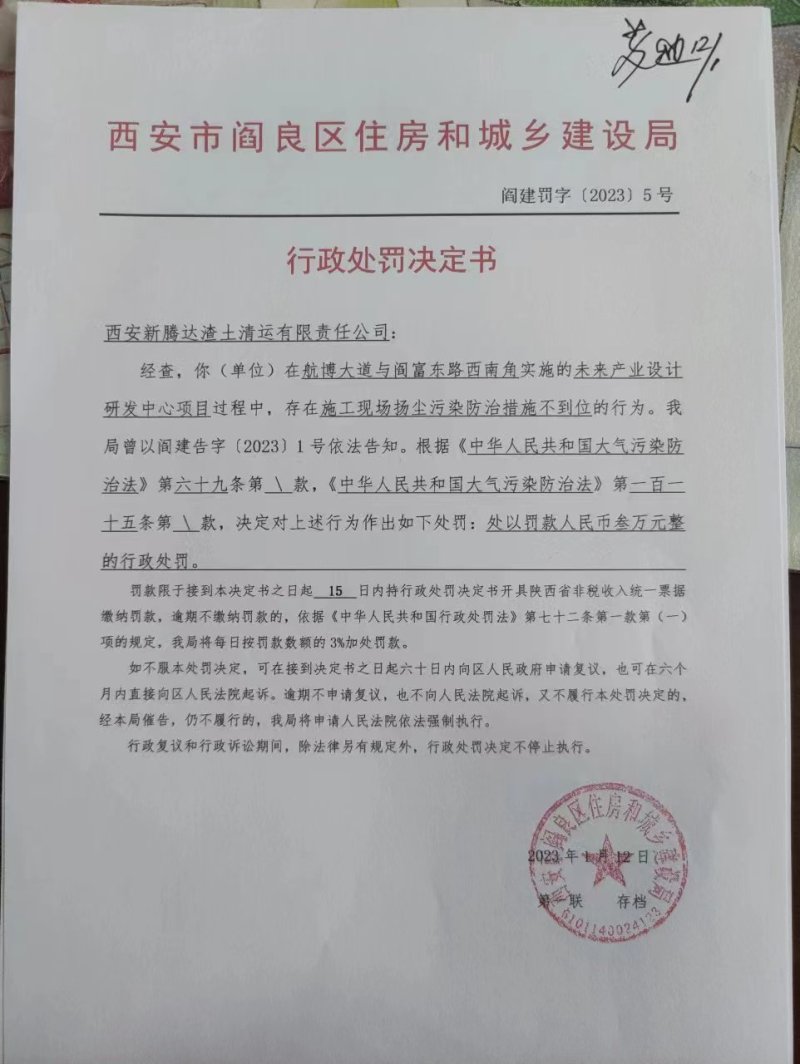 閻建罰【2023】5號