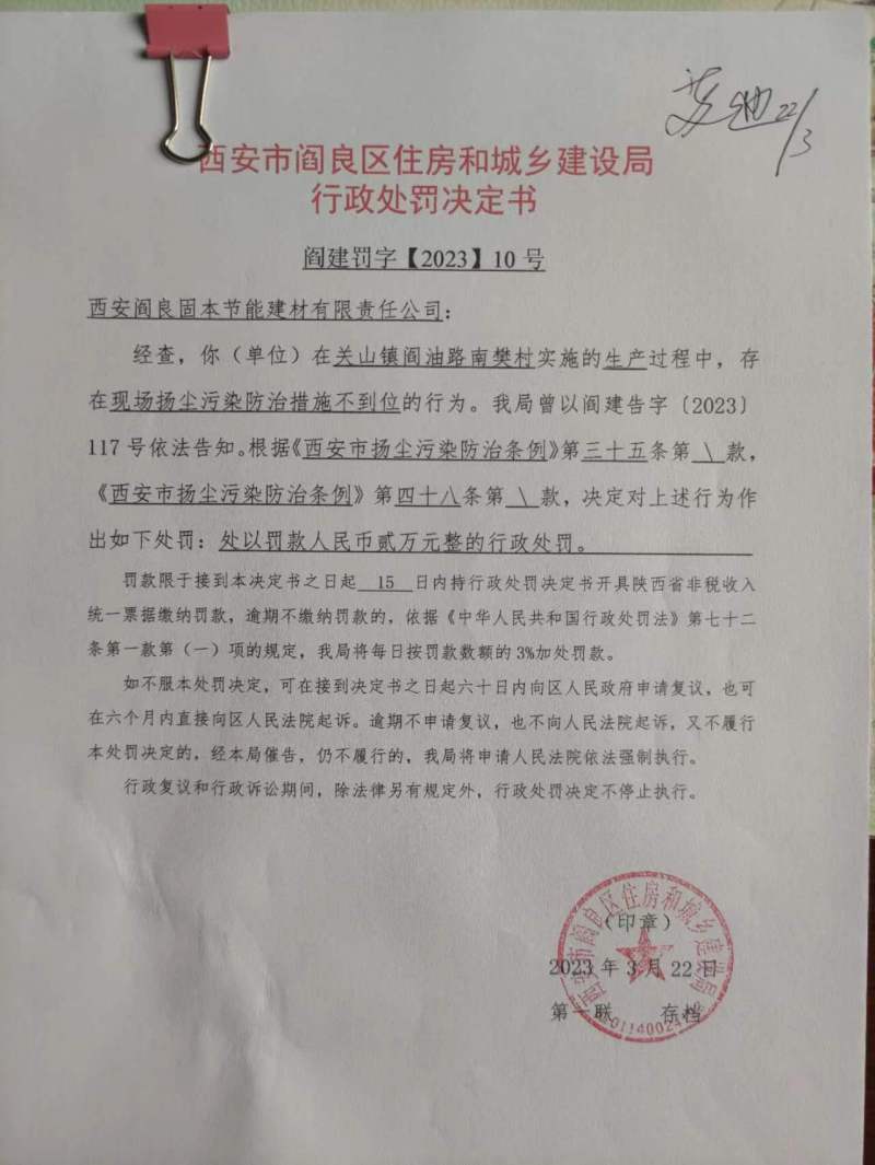 閻建罰【2023】10號