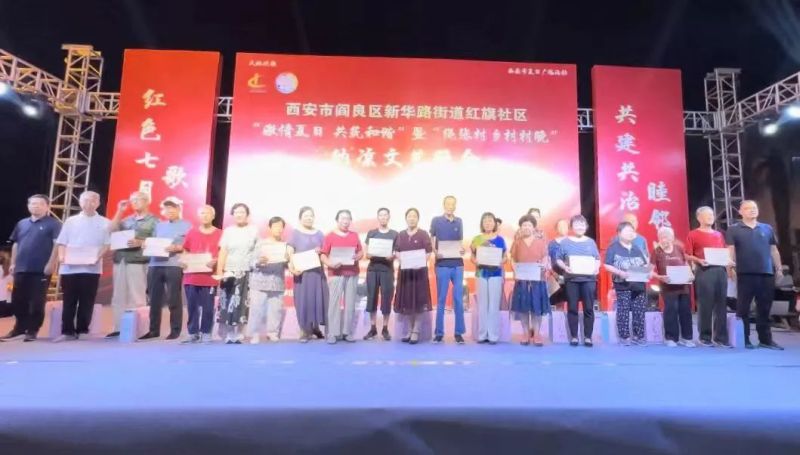 精彩的納涼晚會讓歌聲與掌聲交織、激情與才藝交融,既豐富了社區居民的業余生活,也展現了轄區居民朝氣蓬勃、積極向上的精神風貌?;顒蝇F場,紅旗社區黨委為60余名“優秀黨務工作者”進行集中表彰,以感謝他們對社區工作的大力支持和配合。