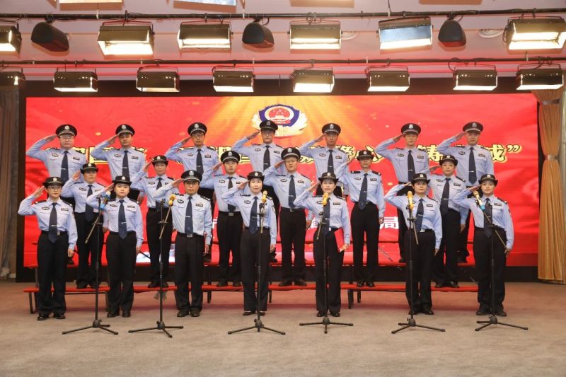 比賽現場氛圍濃厚,合唱隊員精神抖擻!一曲曲合唱響起,一幕幕畫面浮現,唱出了人民警察“對黨忠誠、服務人民、執法公正、紀律嚴明”的鏗鏘誓言,展示了圍繞落實“百千工程”、派出所主防“1551”模式,落實“五共三排一管理”警務機制等工作中發生的生動故事,抒發了對黨和人民的忠誠,對公安事業的熱愛,表達了奮斗新時代的信心與決心!