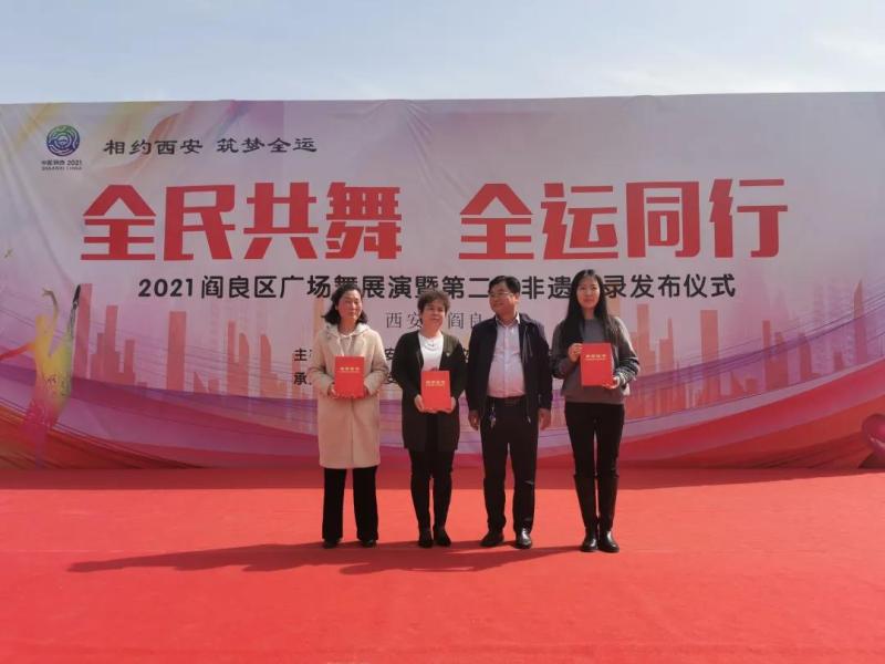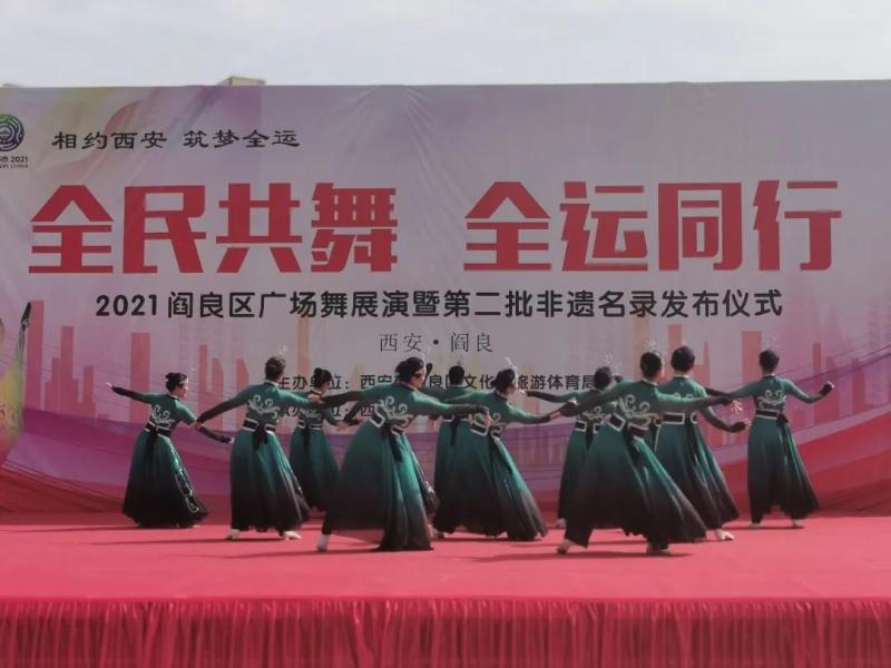 4月17日,由西安市閻良區文化和旅游體育局主辦的“相約西安 筑夢全運”2021閻良區“全民共舞 全運同行”廣場舞展演暨第二批非遺名錄發布儀式在閻良千禧廣場舉行。