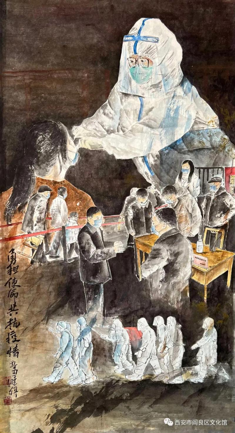 為積極響應黨的號召,認真貫徹落實習近平總書記關于疫情防控工作的重要指示,依靠人民群眾堅決打贏疫情防控阻擊戰,發揮了文藝作品的價值宣傳引領作用,戮力同心抗擊疫情。閻良區美術工作者“藝”無反顧,執筆書畫,第一時間創作出了一批激奮人心的抗疫主題作品,他們用手中的畫筆表達著勠力同心,共克時艱的巨大信心!