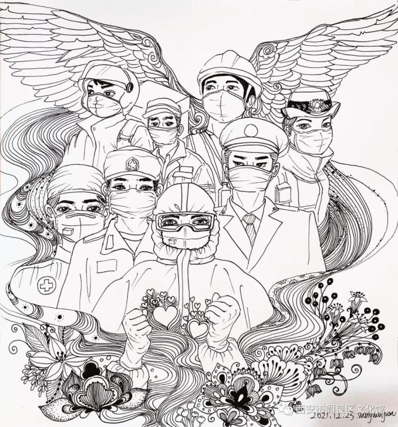 | 內容概述 | 閻良區美術工作者“藝”無反顧,執筆書畫,第一時間創作出了一批激奮人心的抗疫主題作品,他們用手中的畫筆表達著勠力同心,共克時艱的巨大信心!辛琦明《天使之花》王轉榮《大雁塔下抗疫情》辛琦明《傲雪》王莞娟《西安我們來了》尚曉蓮《志愿者之歌》黨曉婷《勇擔使命共抗疫情》尚曉蓮《由我做起》高健《守護家園》張曉瑜《山河無恙》田英華《堅守》劉巍《背影》田英華《一個都不能少》王莞娟《眾志成城盼春來》劉興莉《暖陽》劉巍《傲骨紅梅》阮國盼《熟睡的天使》孫勇《陣前有我》覃雯《平凡的英雄》劉春來《鐘馗圖》尹藝穎《終南山守護西安》王莞娟《鳳凰涅槃西安加油》 | ||||