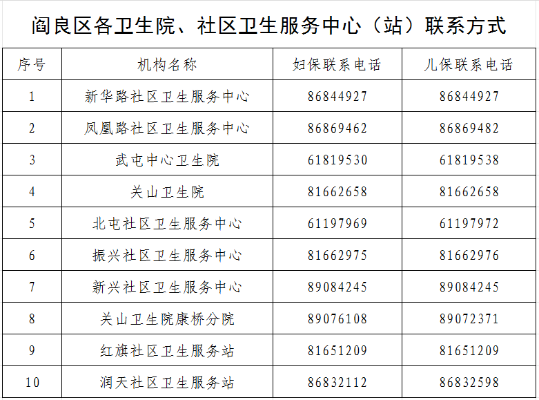 七、閻良區國家免費婦幼公衛項目服務機構及聯系方式