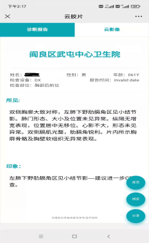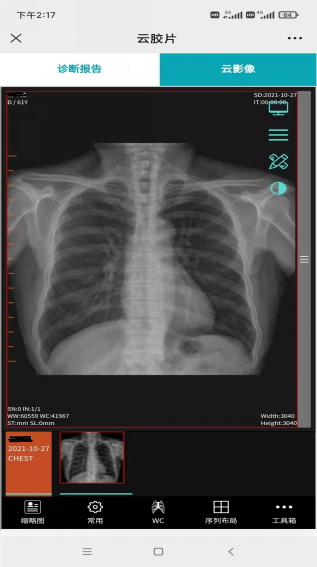 “云”影像,簡單地說就是拋棄傳統(tǒng)膠片,通過手機(jī)、ipad等智能終端查看檢查報(bào)告和片子。只需微信掃一掃報(bào)告單上的二維碼,隨時(shí)隨地查閱影像和電子報(bào)告,方便攜帶和保存。如有會(huì)診需求,也可以把二維碼拍照發(fā)給相關(guān)醫(yī)師,醫(yī)師只需識別二維碼就可以查看病人的檢查結(jié)果。