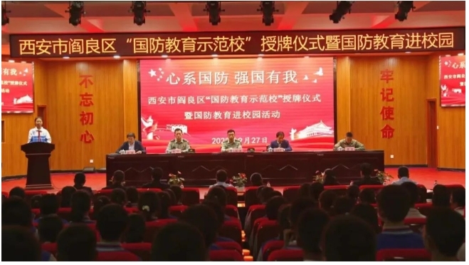 2023年9月27日,西安市閻良區教育局、閻良區武裝部在西飛一中舉行了“國防教育示范校”授牌儀式暨國防教育進校園活動。閻良區人民武裝部政治委員楊濤、閻良區人民武裝部副部長韓寧、閻良區教育局黨委委員高鎖用、西飛一中、西飛二中學校領導及師生代表參加了大會。