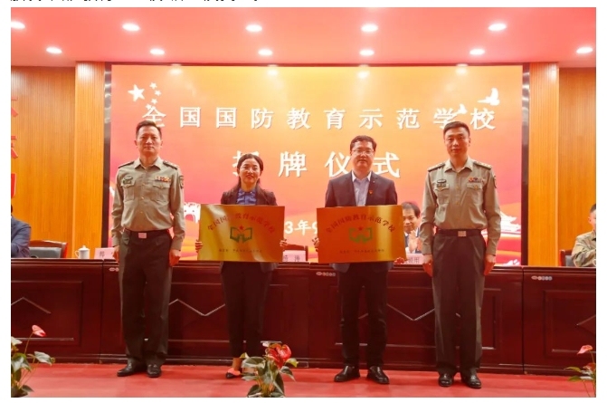 授牌儀式在雄壯的國歌聲中拉開帷幕。區武裝部宣讀教育部、中央軍委政治工作部《關于認定公布中小學國防教育示范學校的通知》,為西飛一中、西飛二中頒發“國防教育示范校”牌匾及獎金。