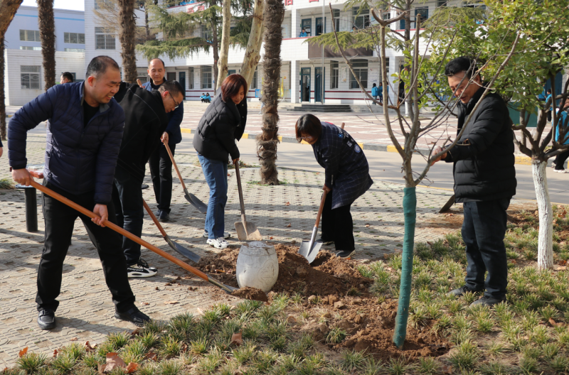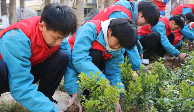 關山中學組織部分老師、學生在學校花壇種樹栽花,大家分工明確、細致細心,播種下春天的“希望”,為校園增添新綠。