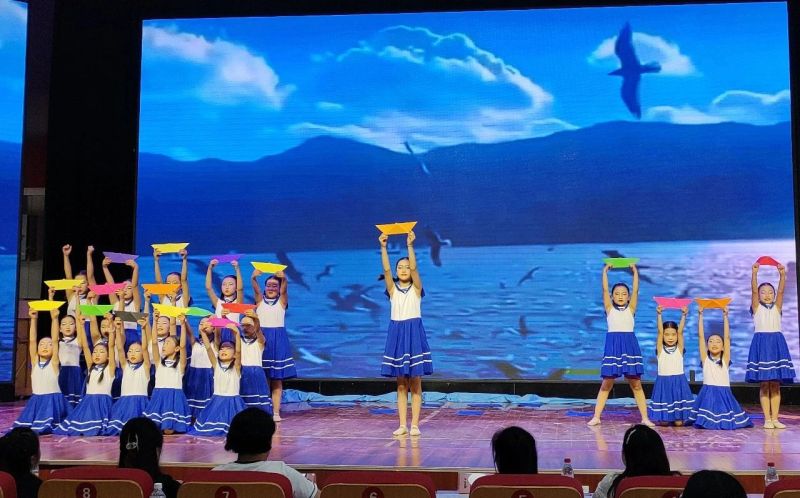 本次藝術展演設合唱、舞蹈、器樂、朗誦、戲劇等5個項目共47個節目,小學組與中學組分別進行展示,通過《我的祖國》《燈火里的中國》《我們是共產主義接班人》《紅色先鋒》《星星之火》《如果沒有李白》《“童”心協力》等節目,同學們用嘹亮的歌聲唱出對美好生活的向往,表達對祖國的熱愛,用優美的舞姿展現青春活力與激情,充分彰顯了藝術教育育人功能。