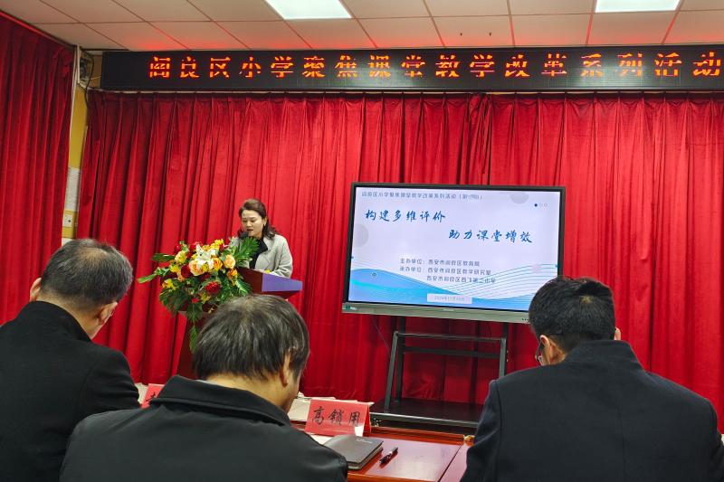 活動伊始,西飛二小校長閆虹發表了熱情洋溢的致辭,介紹了學校以多樣化評價推進課堂教學改革的探索和嘗試及改革成果。區教育局黨委委員高鎖用肯定了西飛二小教育教學改革工作,希望全區各校聚焦課堂、創新實踐,提高課堂教學質量,建設閻良好課堂。