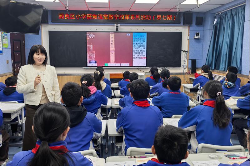 隨后,西飛二小精心準備了3節觀摩研討課,區教學能手張妍執教四年級語文《為中華之崛起而讀書》,巧設“講好少年故事”“探究立志原因”“暢談少年志向”三個學習任務,運用多維度評價量表和激勵性的評價語言,讓學生自主探究、合作學習。以讀促思,以讀悟情,助推學生思維能力、語言表達能力有效提升。