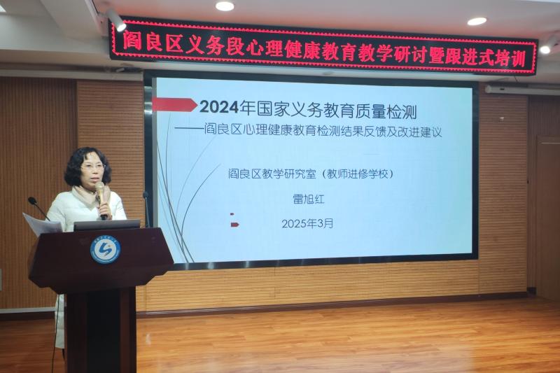 心理健康兼職教研員雷旭紅作“2024年國家義務教育質量檢測——閻良區心理健康教育檢測結果反饋及改進建議”專題報告。通過豐富的案例與詳實的數據,對四年級和八年級學生在多個維度的心理健康狀況進行全面分析,分享閻良心理健康教育教學亮點與成績,并針對心理健康教育現狀建議學校在心理課程設置上緊密貼合學生特點,同時注重跨學科融合發展趨勢,將心理健康教育融入日常教學,為學生構建全方位的健康成長環境。