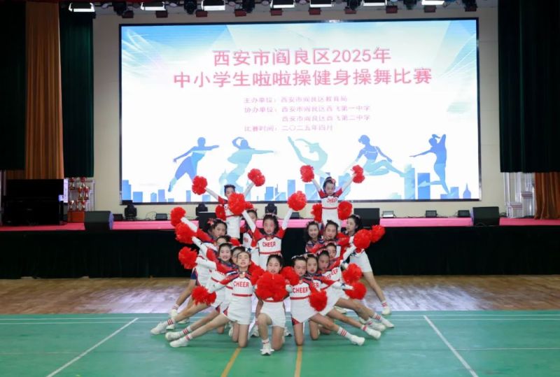 為進一步推動校園陽光體育活動蓬勃開展,豐富學生課余生活,4月9日,由閻良區教育局主辦,西飛一中和西飛二中協辦的閻良區2025年中小學生啦啦操健身操舞比賽在西飛一中體育館舉行。